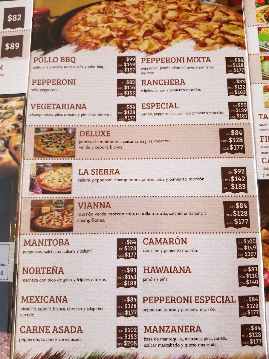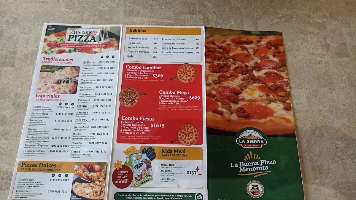 Welcome to Pizza La Sierra, located in the heart of Paso de Chihuahua, where flavor thrives in every bite. This delightful eatery offers an impressive selection of pizzas, each crafted with care and featuring a unique blend of fresh ingredients. Customers rave about the four-cheese pizza, celebrated for its rich taste and delightful texture. Alongside its star pizzas, Pizza La Sierra also serves enticing breakfast options, making it a perfect spot for any meal of the day.